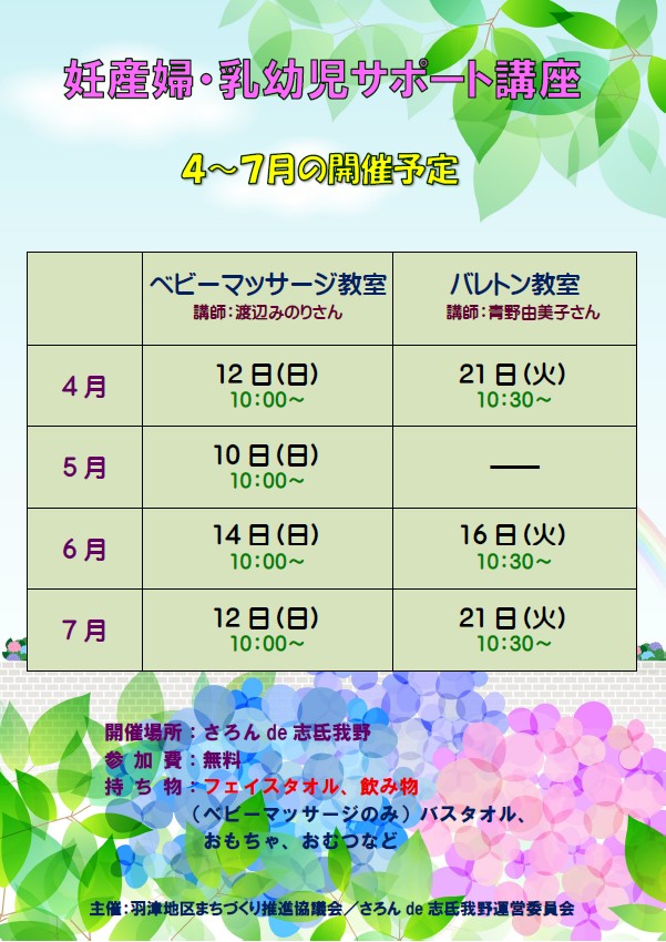 妊産婦・乳幼児サポート講座の予定